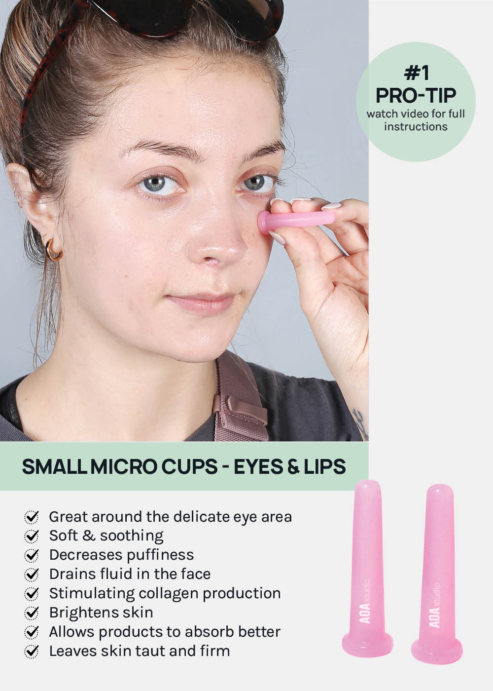 - Micro Cup: 2 pieces included. For around the eyes and mouth