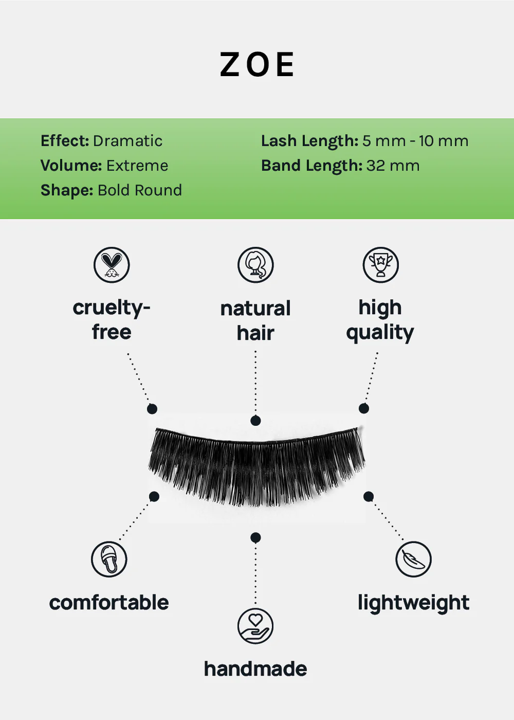 Lightweight + SUPER COMFY, AOA Studio Eyelashes are 100% Natural Hair + add fluttery glamor, length, volume, + definition to all eye shapes. Features a non-scratchy, flexible, invisible lash band for a super realistic look. Handcrafted with care.